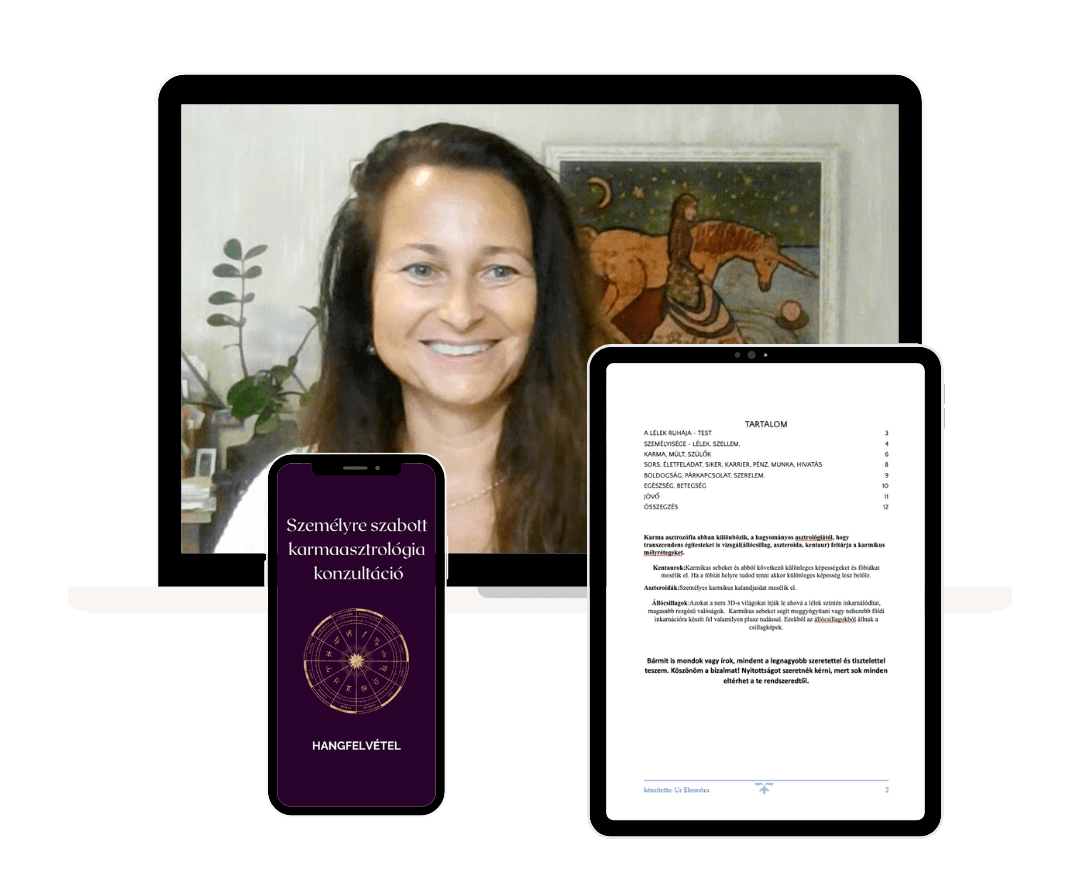 Ur Eleonóra vagyok, karmaasztrológus, és olyan embereknek segítek, akik választ keresnek az életük nagy kérdéseire – legyen szó párkapcsolatról, hivatásról vagy a saját útjuk megtalálásáról.